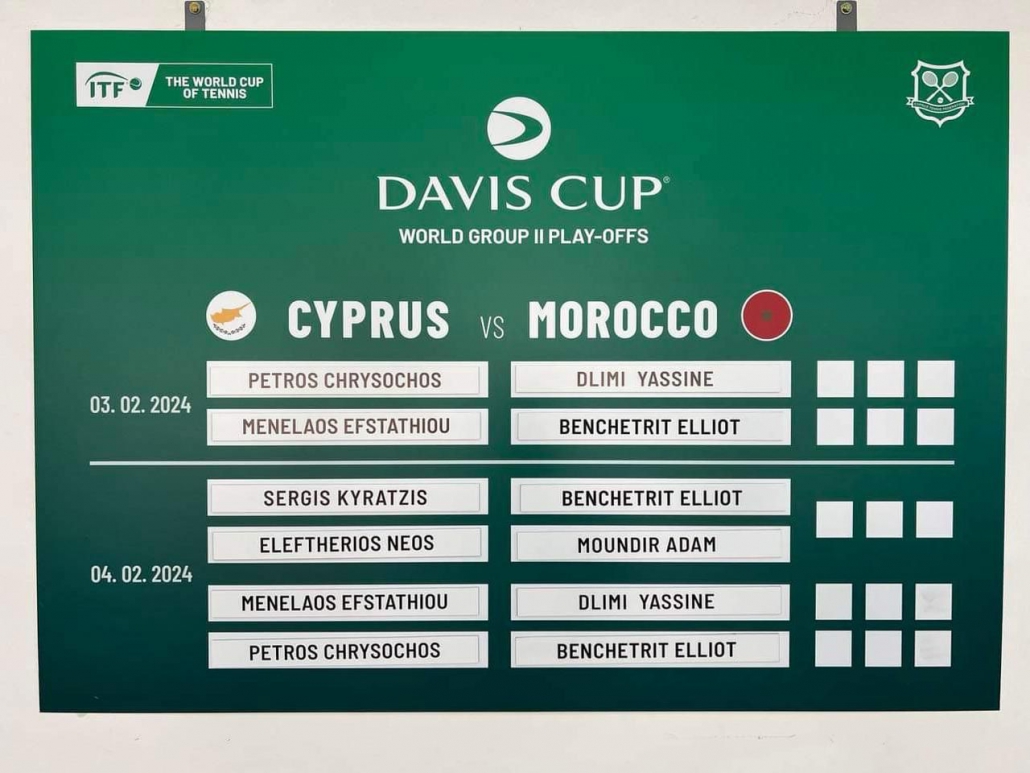 Coupe Davis Chypre 1 – 3 Maroc | 03-04 Février 2024